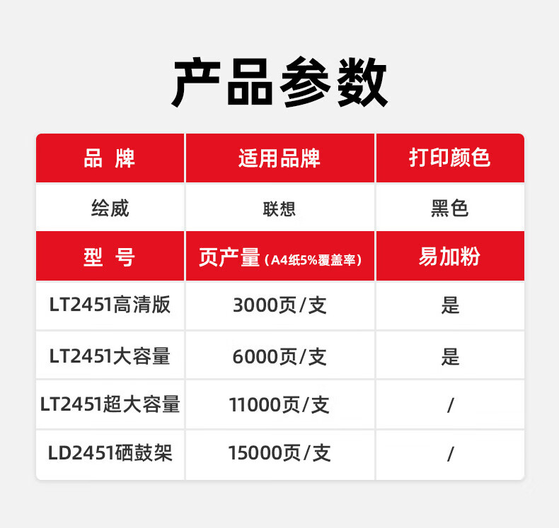商品属性 [供应商] 深圳市怡亚通供应链股份有限公司 [品牌:] 绘威 [型号:] LT2451 [规格:] 高清版 打印页数3000页