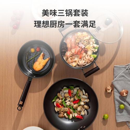 商品属性 [供应商] 大江科技集团有限公司 [口径] 炒锅*32cm*1+煎锅*22cm*1+汤锅*22cm*1 [品名] 三禾(SANHO)T322火焰纹老铁锅三件套(炒锅*32cm*1+煎锅*22cm*1+汤锅*22cm*1 ) [材质] 铁 [型号] T322 [品牌] 三禾(SANHO)