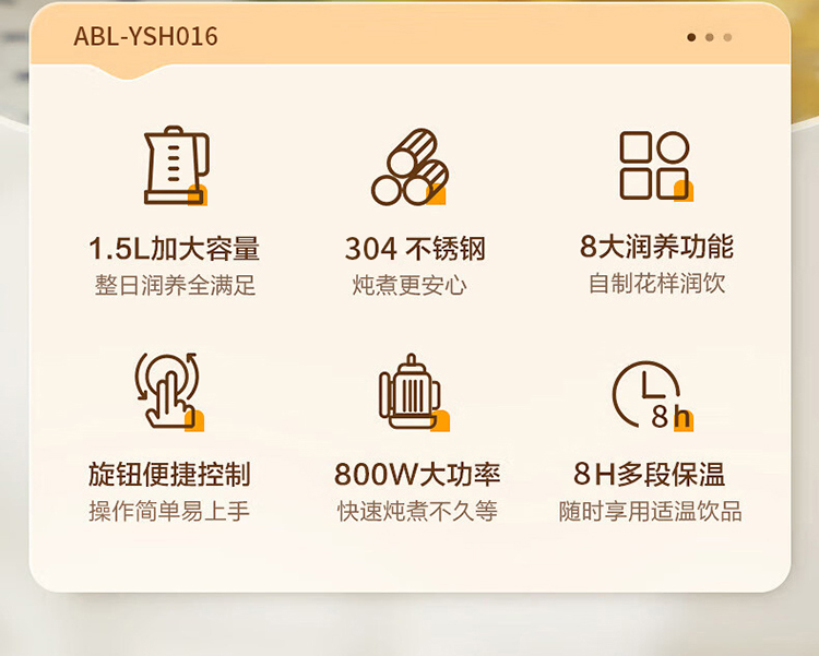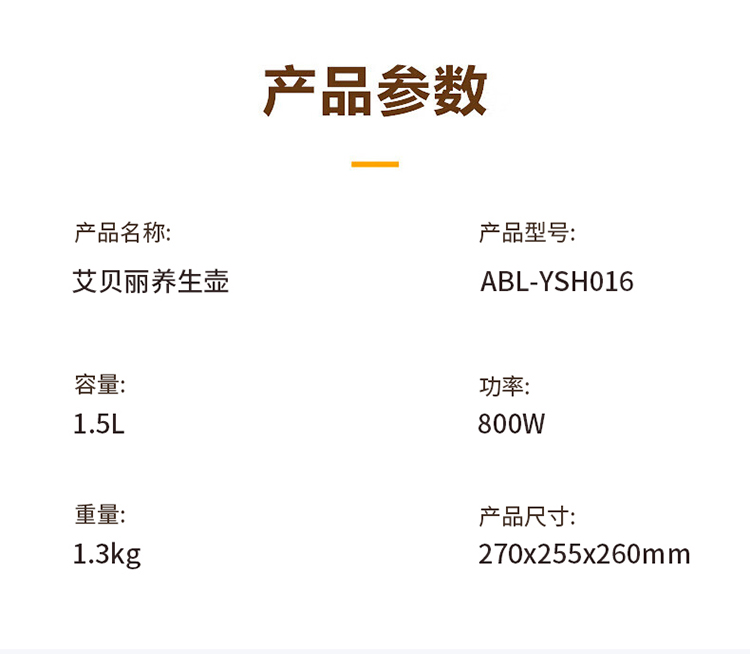 商品属性 [供应商] 得力集团有限公司 [品牌] 艾贝丽 [型号] ABL-YSH016 [销售单位] 台 [容量] 1.5L [产品尺寸] 270x255x260mm
