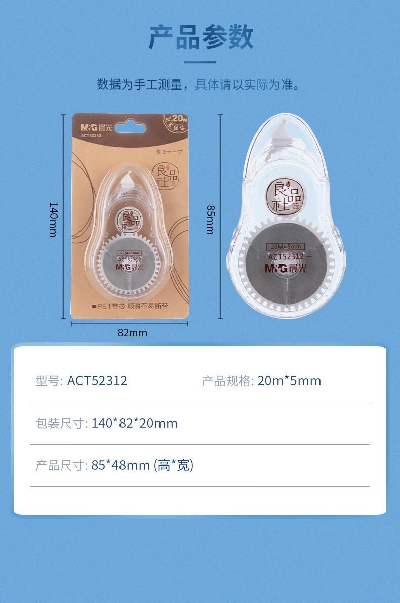 商品属性 [供应商] 深圳市怡亚通供应链股份有限公司 [品牌:] 晨光(M&G) [型号:] ACT52312 [规格:] 20m*5mm