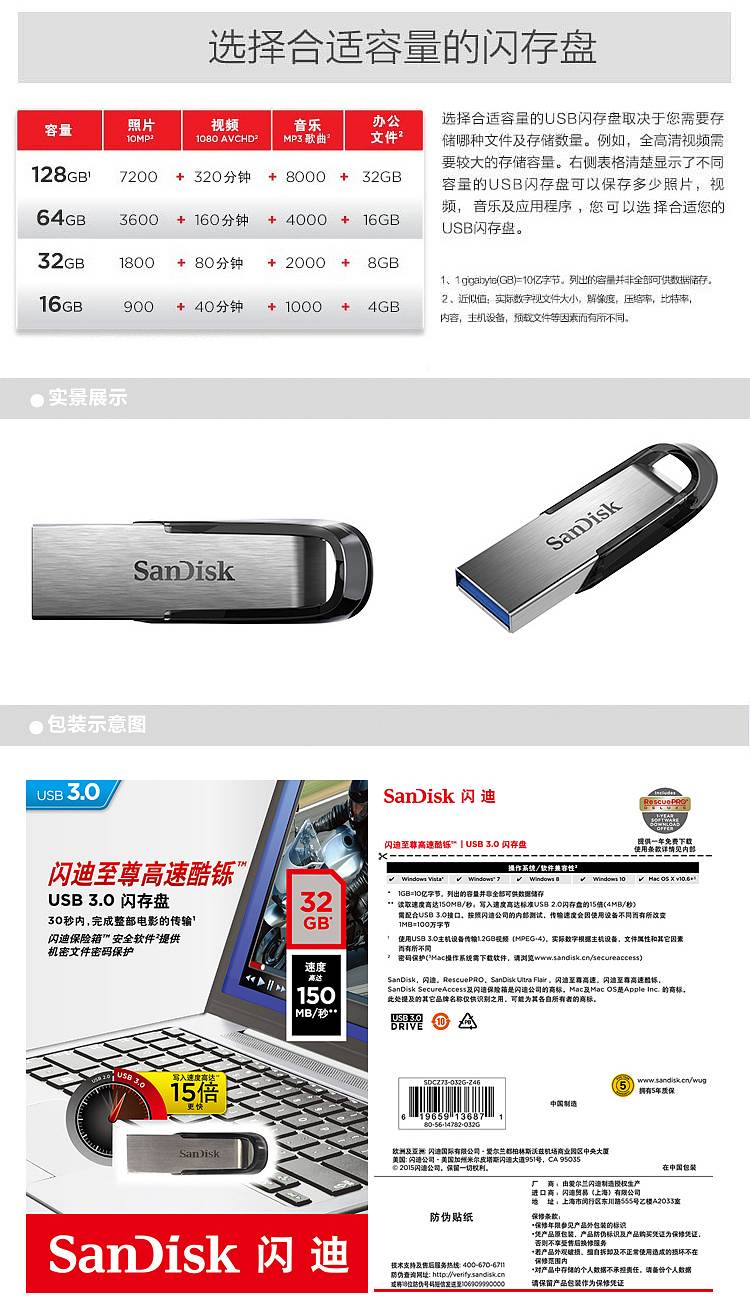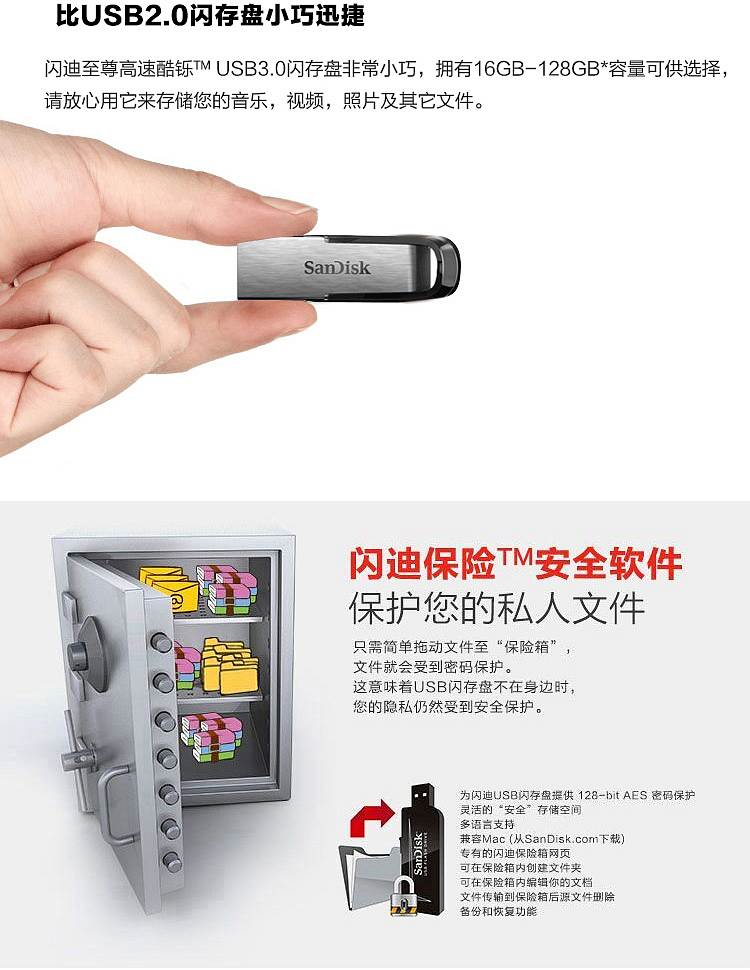 商品属性 [供应商] 得力集团有限公司 [品牌] 闪迪(SanDisk) [型号] CZ73 [容量] 128G [接口] USB3.0