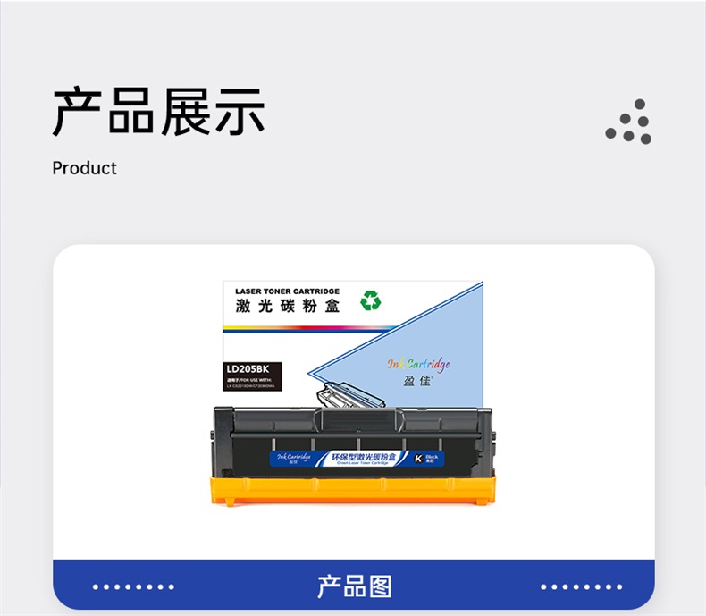 商品属性 [供应商] 科力普科技集团股份有限公司 [打印量] 4500页 [商品毛重] 0.9kg [适用机型] 适用机型: 联想Lenovo CS2010DW CF2090DWA [品牌] 盈佳 [型号] LD205BK