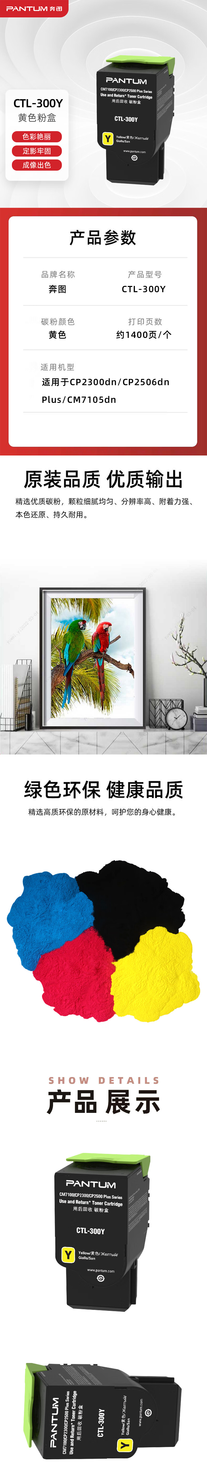 商品属性 [供应商] 得力集团有限公司 [品牌] 奔图(PANTUM) [型号] CTL-300Y [商品标题] 奔图 CTL-300Y 原装粉盒 黄色 (支) [销售单位] 支 [质保期] 一年质保
