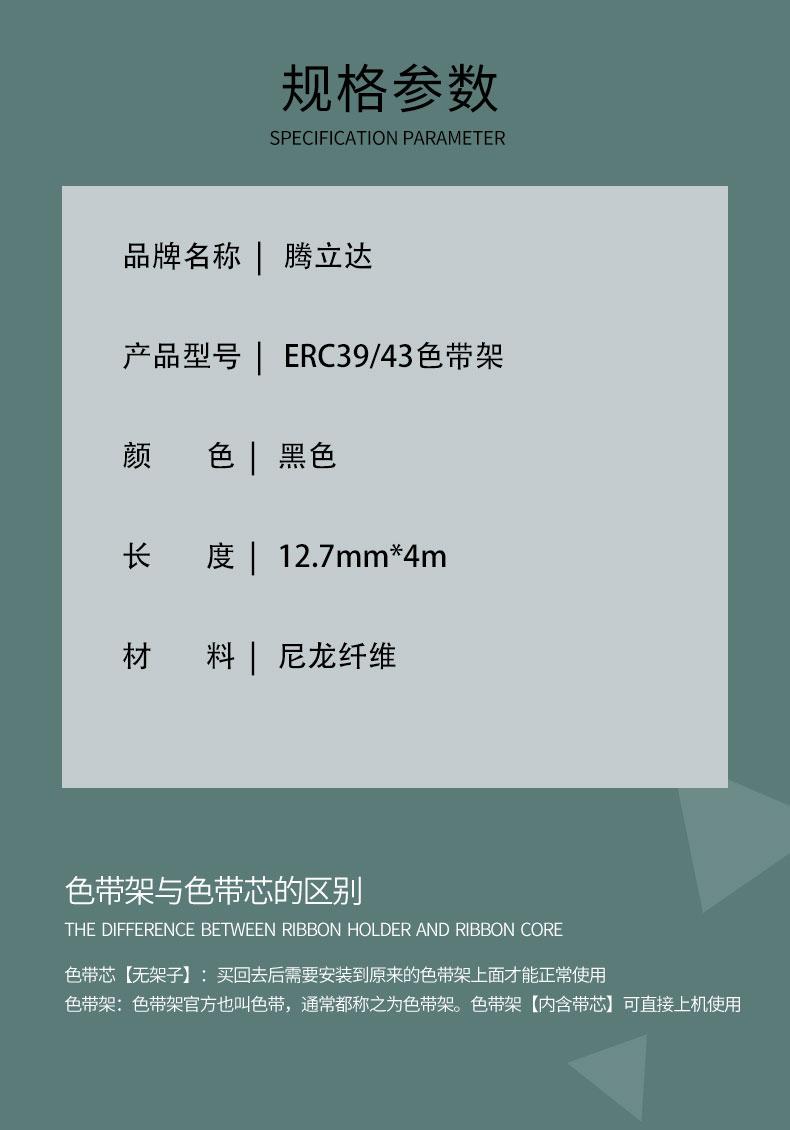 商品属性 [供应商] 深圳市怡亚通供应链股份有限公司 [品牌:] 腾立达 [型号:] ERC-39/43 [规格:] 10个/套 12.7mm*4m