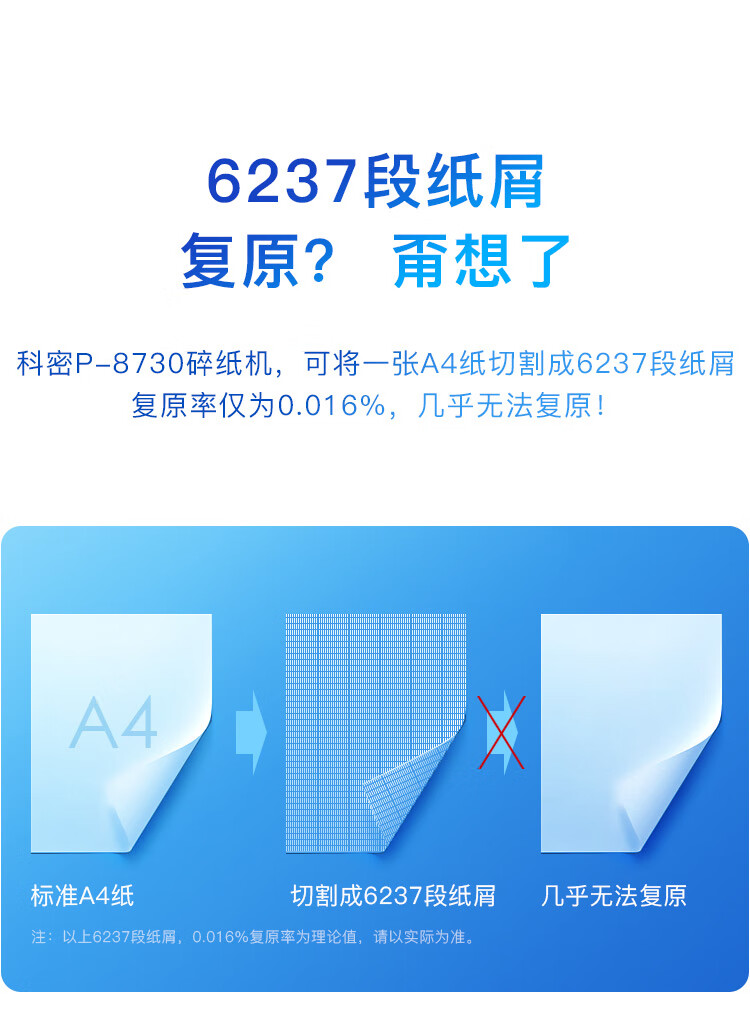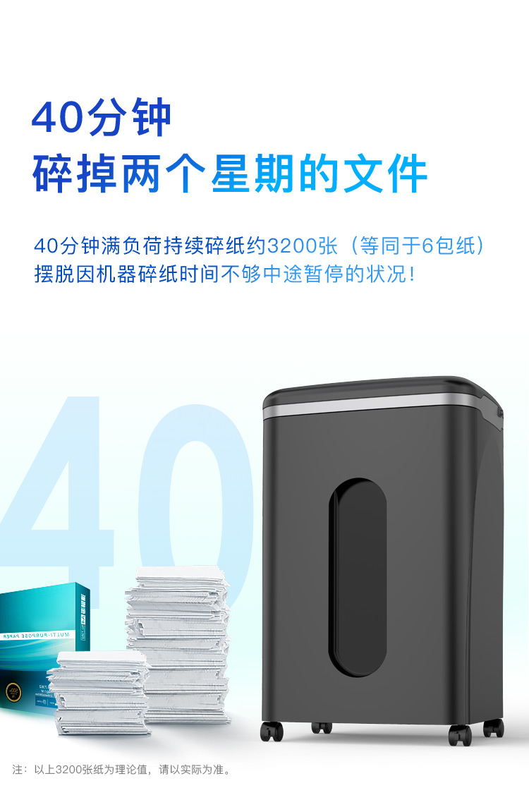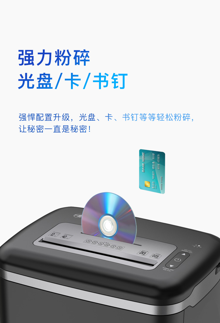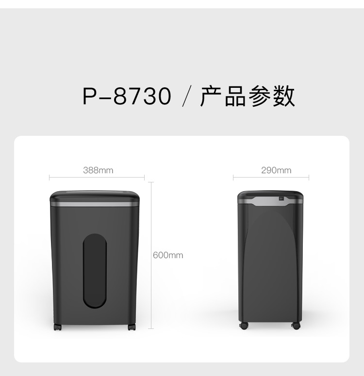 商品属性 [供应商] 德致商成集团有限公司 [最大碎纸幅面] A4 [保密等级] 5级 [单次碎纸张数] 10张 [纸箱容量] 25L