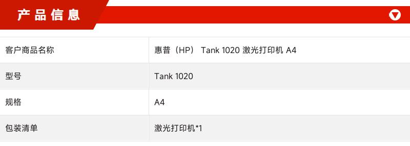 商品属性 [供应商] 史泰博(上海)有限公司 [品牌] 惠普(HP) [型号] Tank 1020
