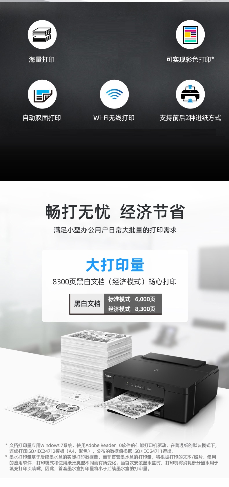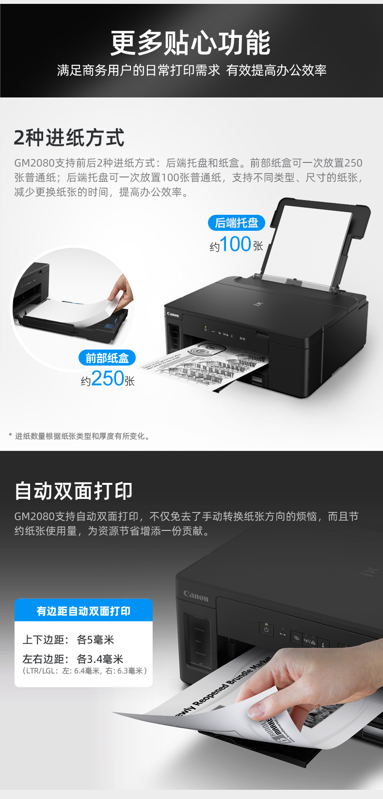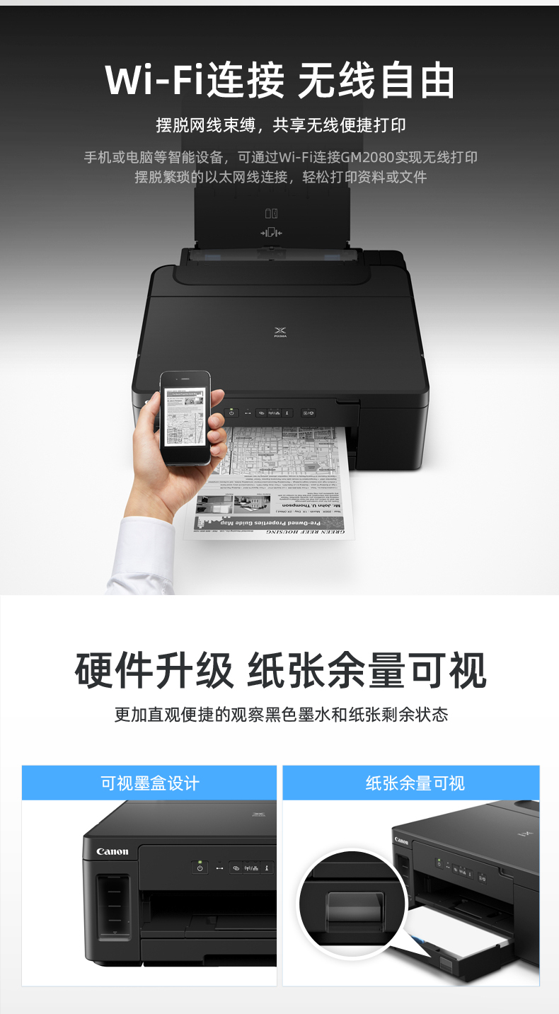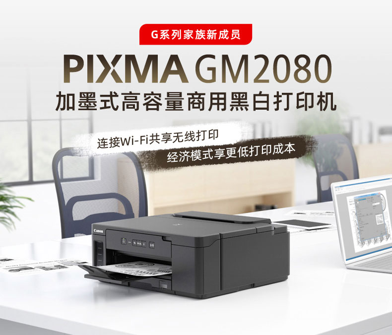 商品属性 [供应商] 深圳市怡亚通供应链股份有限公司 [品牌:] 佳能(Canon) [型号:] GM2080 [规格:] A4 403*369*166mm