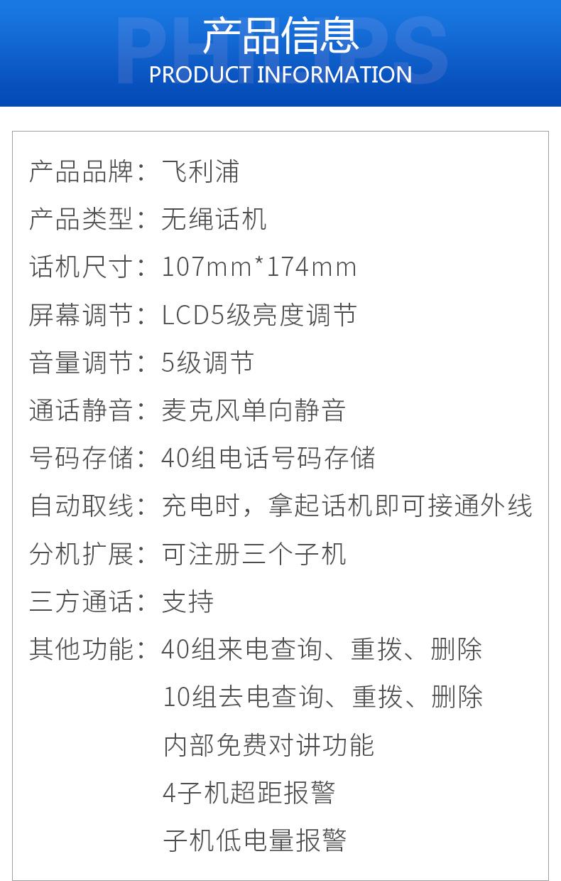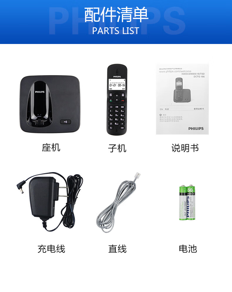 商品属性 [供应商] 科力普科技集团股份有限公司 [品牌] 飞利浦 [型号] DCTG186(1+2)