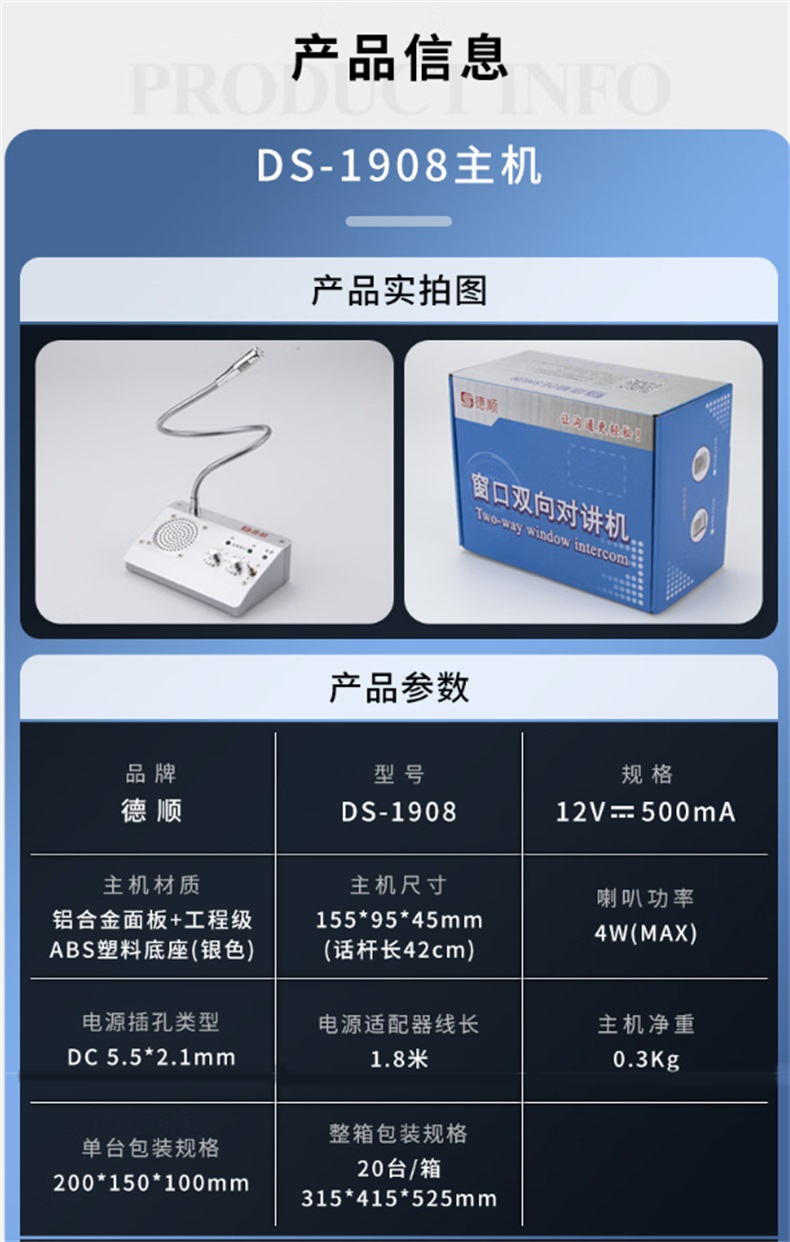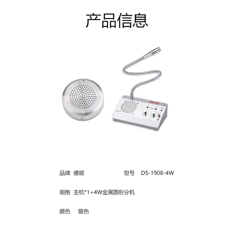 商品属性 [供应商] 科力普科技集团股份有限公司 [背景照明] 无 [有无显示屏] 无 [对讲机_可调频] 否 [品牌] 德顺 [型号] DS-1908-4W